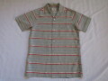 1950年代のBtayard ボーダーレーヨンシャツです。グレーベースに赤、白、青のボーダー柄のレーヨン地です。若干光沢が感じられる綺麗な生地です。一枚でもジャケットのインナーとしてもおすすめです。サイズの合う方はいかがでしょうか?